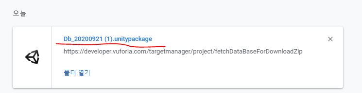 아까 위에서 다운로드 받은 Unitypackage 파일을 풀어주면 Database와 ImageTarget을 사용할 수 있다.