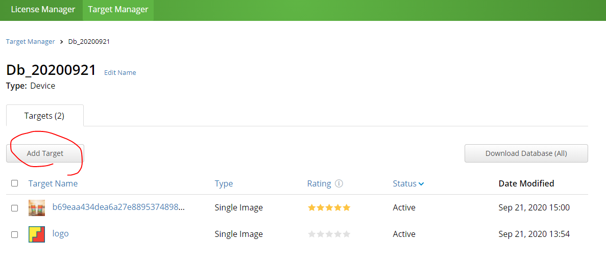 ImageTarget에 사이트에서 등록한 이미지가 보이고