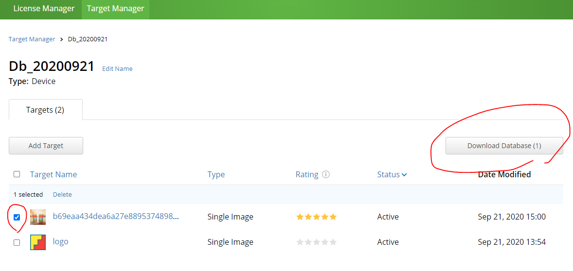 ImageTarget도 생성해준다.
