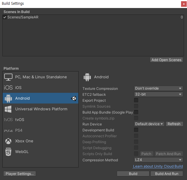 ARFoundation으로 ARCore 사용하기 - 초기셋팅