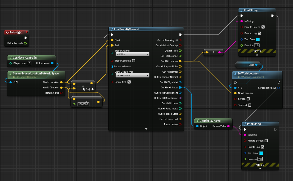 [Unreal] 마우스 좌표를 이용해 LineTrace로 WorldSpace 좌표 가져오기