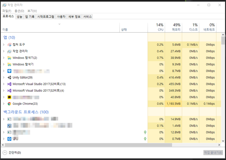 프로세스 이름은 작업 관리자에서 해당 앱 우클릭 - 속성에 들어가서 이름(.exe빼고)을 사용합니다.